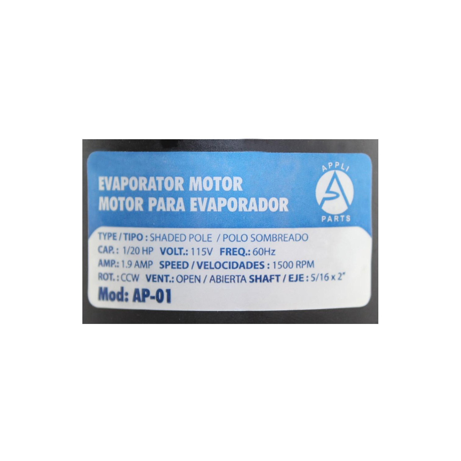 Appli Parts Fan Motor 1/20Hp 115V 60Hz 2.1A 1550rpm CWLE Ball bearing 1sft UL E486336 replaces D1101 APFM-01