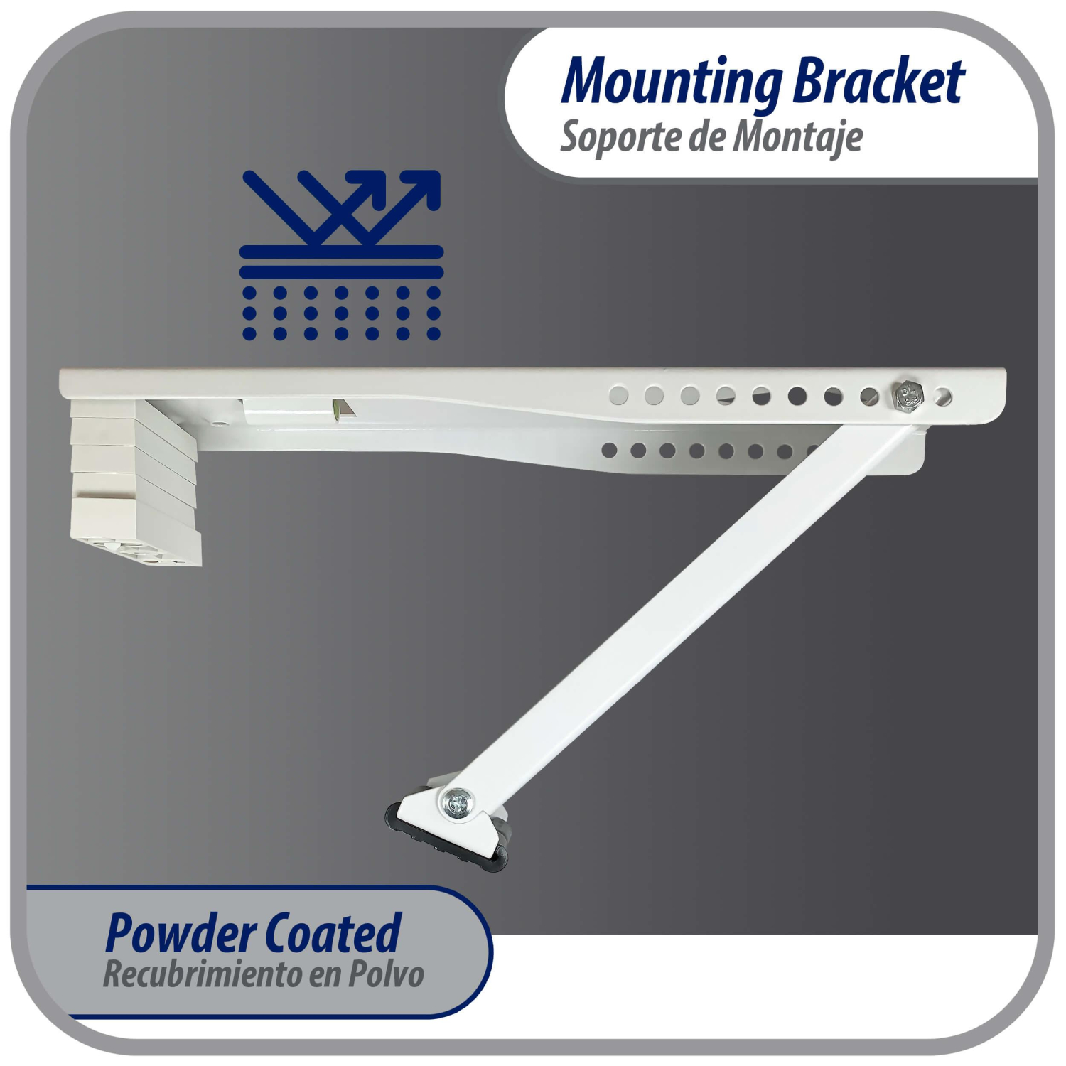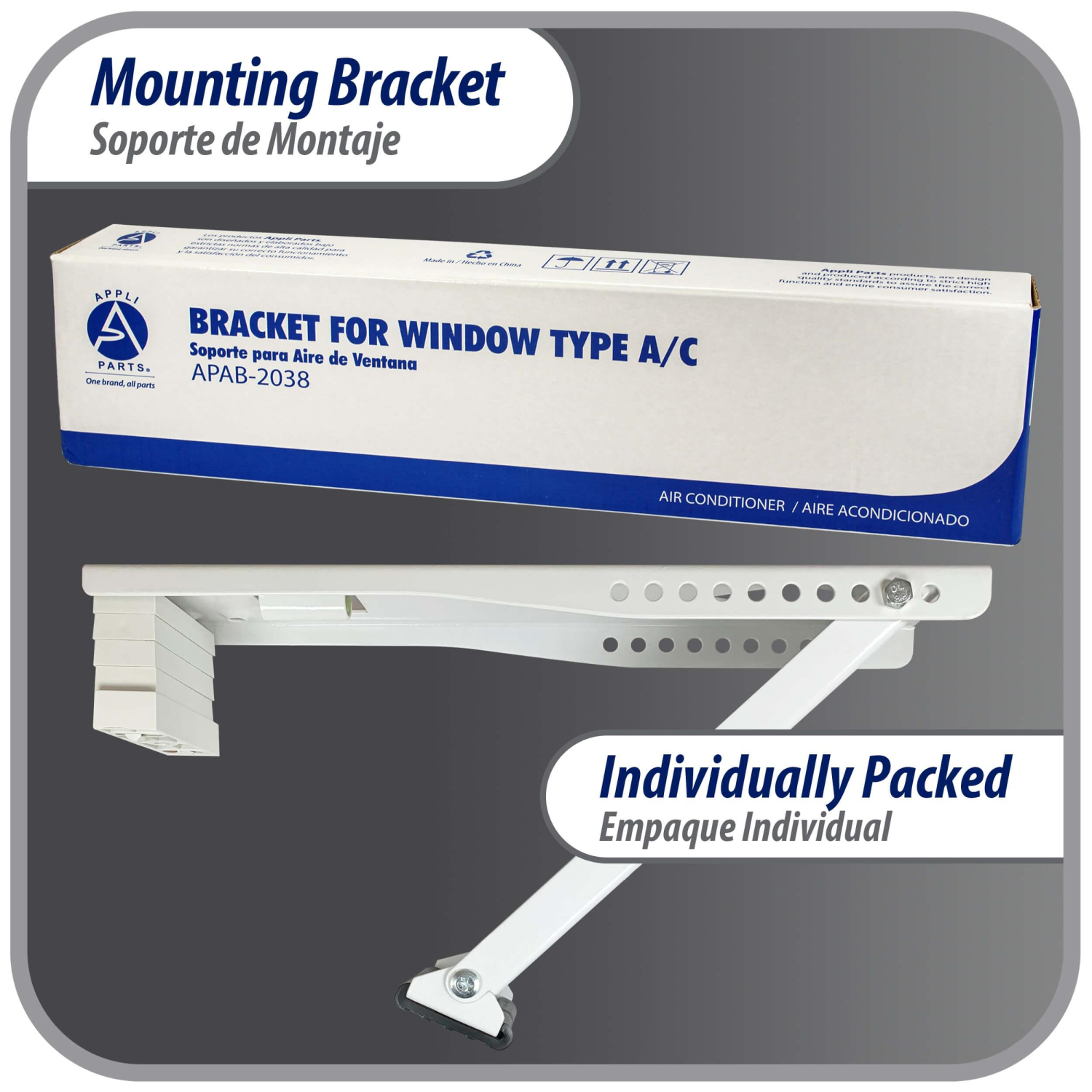 Appli Parts Window air conditioner bracket for Units Up To 85 lbs heavy duty powder coated finish mount for extra durability with installation hardware included and mounting parts APAB-2038 Universal: This ac support bracket has several installation settings for multiple equipment size and shapes. The position, height and angle can be adjusted to different positions according to the unit Protects: When installing our window unit with a specified support bracket your Investment is protected form Weather Related Debris and Unwanted Visitors (Rodents, Vandalism) Includes Installation Hardware: Brackets with integrated level, Rubber Pads for exterior wall support , Screws and Expanders for different window base materials, Bolts and Nuts for bracket stability Durability: Made of Powder Coated Steel to Withstand Extreme Weather conditions. Will support Ac units typically up to 10,000btu/hr with a maximum weight of 85lbs Quality: Our products are manufactured following High Quality Standards to comply or exceed OEM product requirements. Our brands thrives to offer Top of the Line products