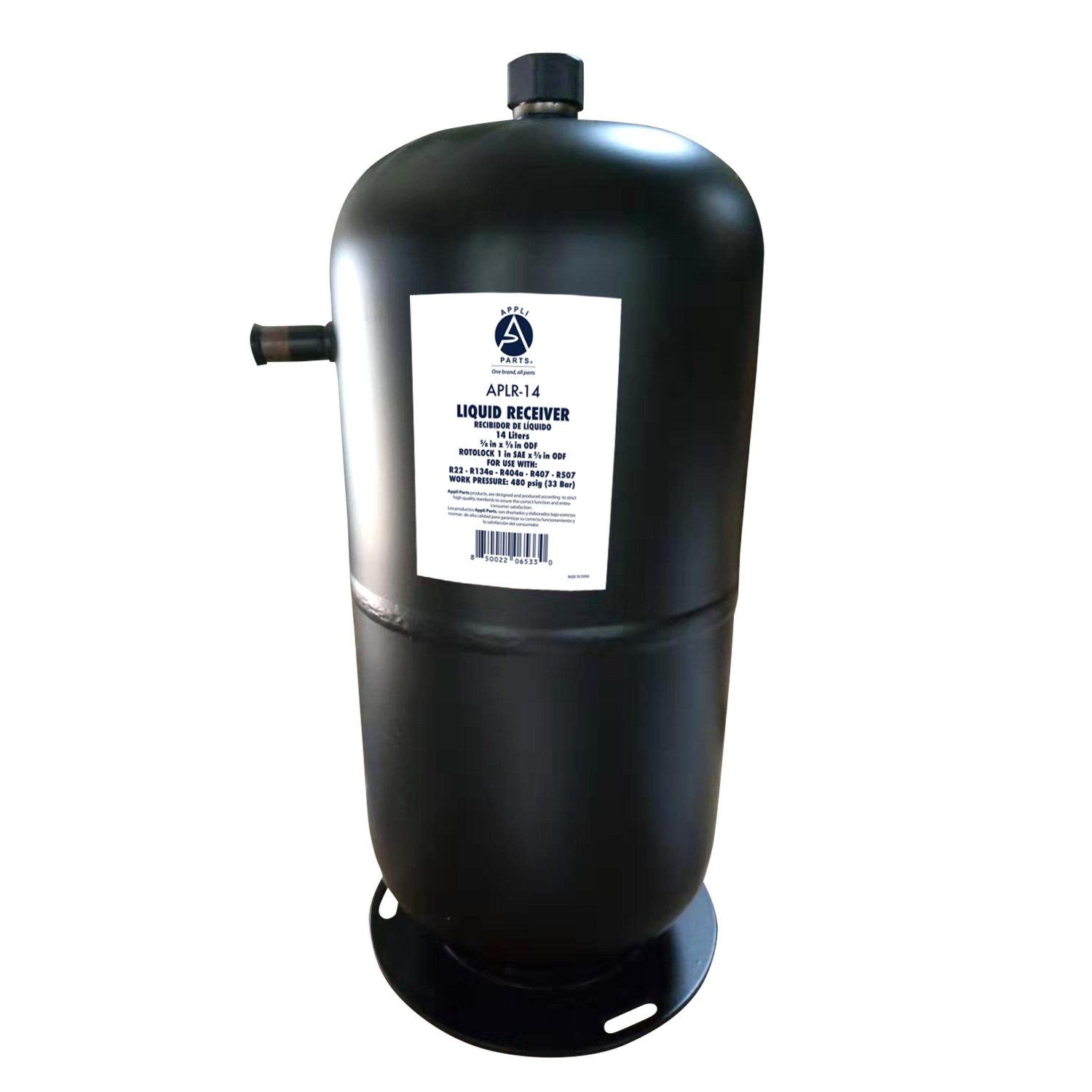 Appli Parts Liquid Receiver 14 Liters 5/8 in ODF Inlet x 5/8 in ODF Outlet with Rotolock 1 in SAE x 5/8 in ODF APLR-14 Use:Commonly used in refrigeration and air conditioning systems, it is used to store the liquid refrigerant, thus ensuring that it enters the expansion valve in that state Compatibility: works in any refrigeration or air conditioning system depending on the liquid storage capacity Replaces: RT630V5S Rotolock DIY: We encourage the hiring of Specialized Technicians. The change of this piece is of medium difficulty. We recommend that you contact your trusted certified technician. Remember that safety measures must be taken before handling the equipment Quality: Our products are manufactured to OEM quality standards to fit as an exact replacement for other brands on the market, but with the same performance as the original product, high quality construction suitable for professionals and DIYers