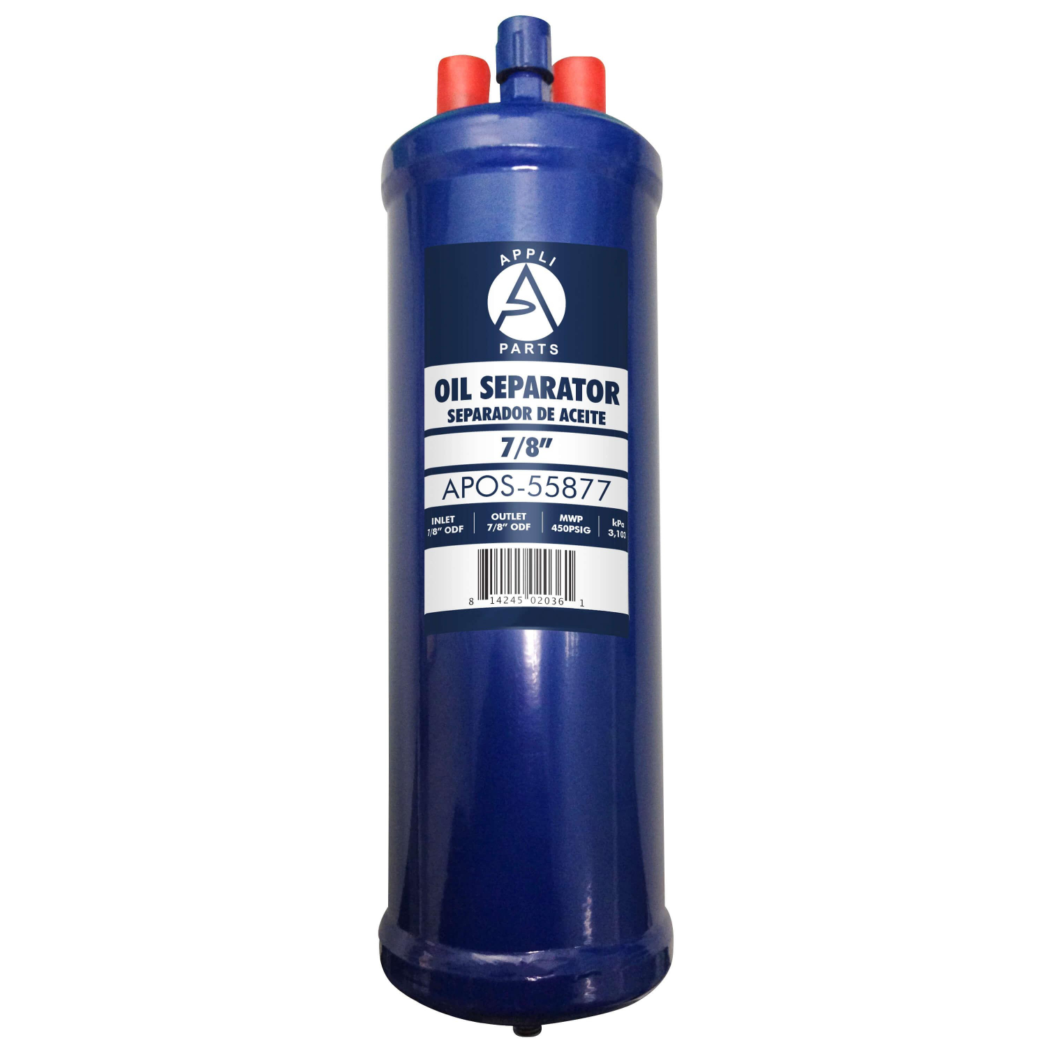 Appli Parts Oil Separator 7/8 inch ODF, CFC / HCFC / HFC R22 / R407C / R502 / R134a / R404A / R507 Working temperature from 14F to 266F, APOS-55877 Replaces Ap-55877 Use: In refrigeration systems to separate oil Compatibility: Works in any refrigeration system depending on the capacity, evaluating the volumetric displacement of the compressor Function: Separates the oil from the hot refrigerant gas in the discharge line, before it enters other sectors of the system and thus returns it to the compressor crankcase or to the oil tank in systems with several compressors Quality: All our products are designed and manufactured following very strict procedures and high quality standards during their manufacture. An optimal selection of materials is made, combined with research and development procedures, which guarantee the durability and performance of each manufactured product, offering our customers the same efficiency expected from an original part Replaces: Cos4-07 B21-097