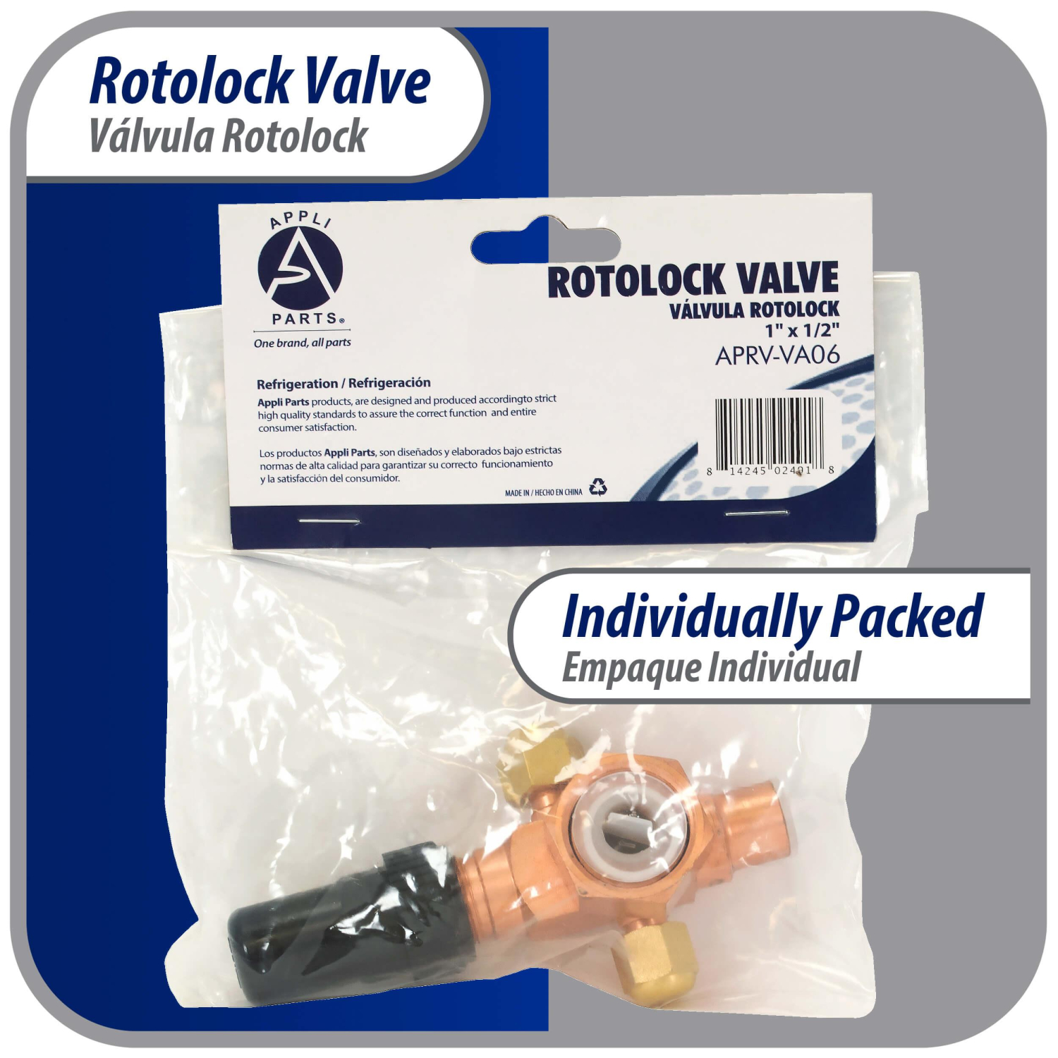 Appli Parts Rotolock Valve V06 1 in x 1/2 in ODF solder connection Universal replacement valve will work for refrigeration and air conditioning systems APRV-VA06
