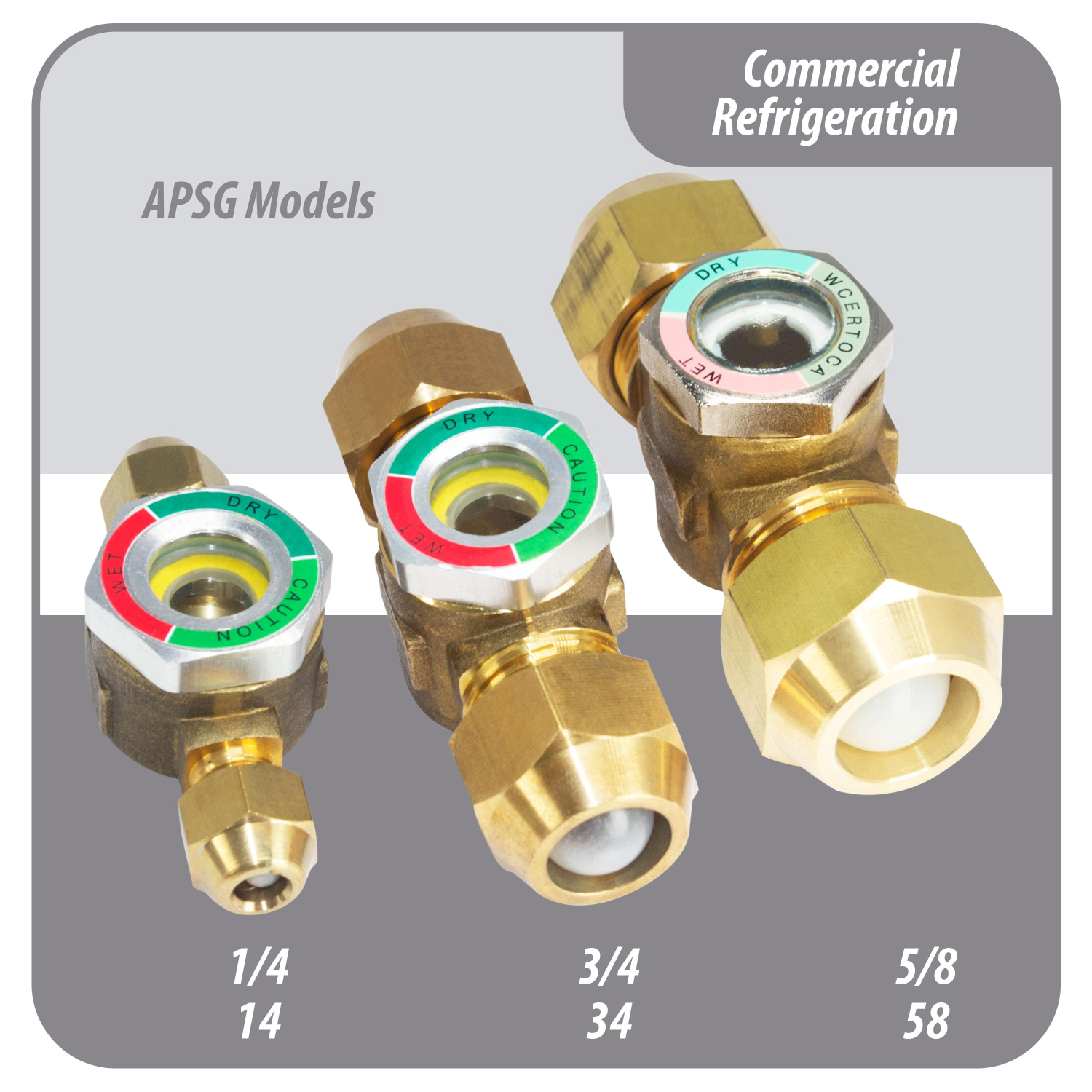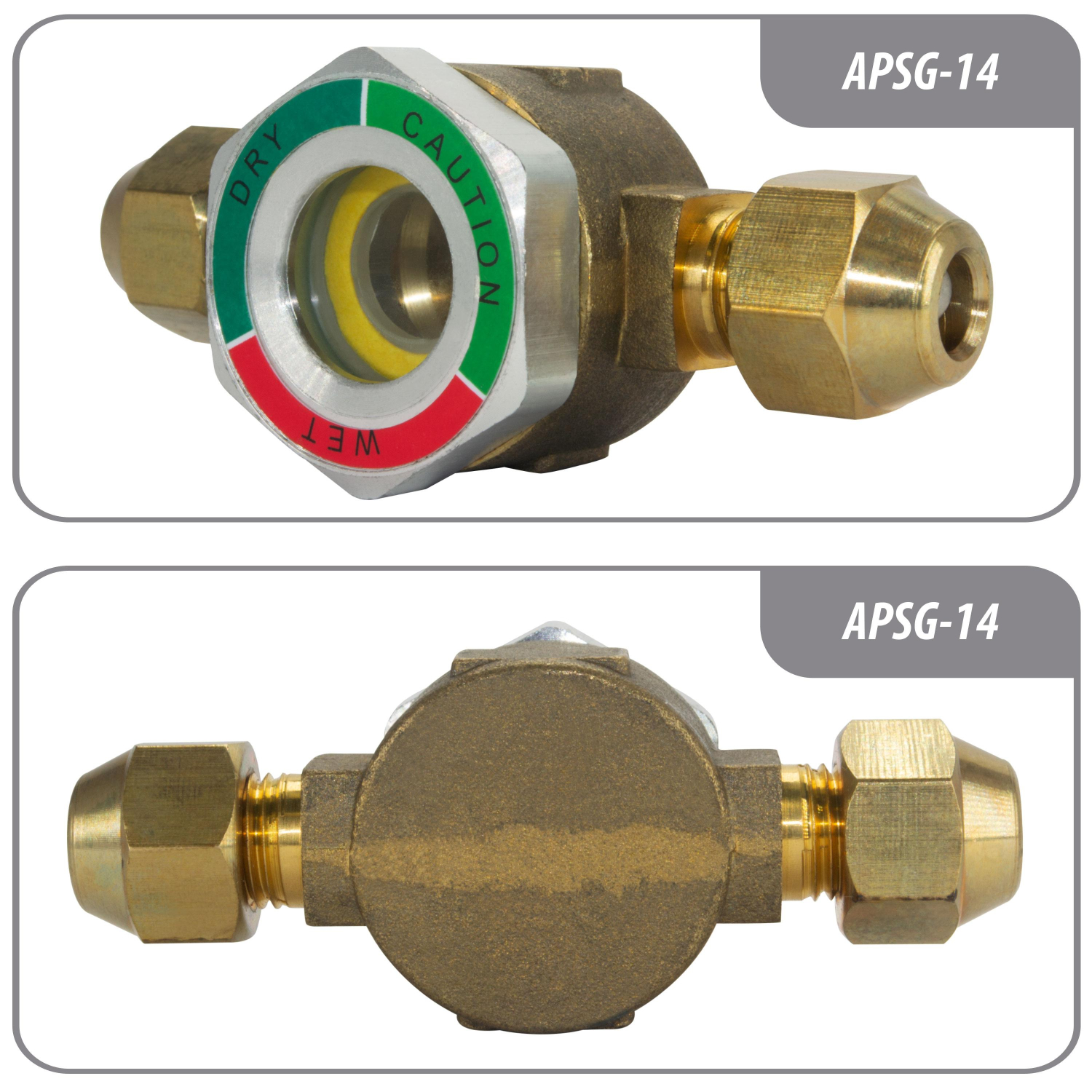 Appli Parts Sight Glass liquid moisture indicator with 1/4 x 1/4 in Flare connections take-apart body type suitable for CFC HCFC HFC refrigerants APSG-14