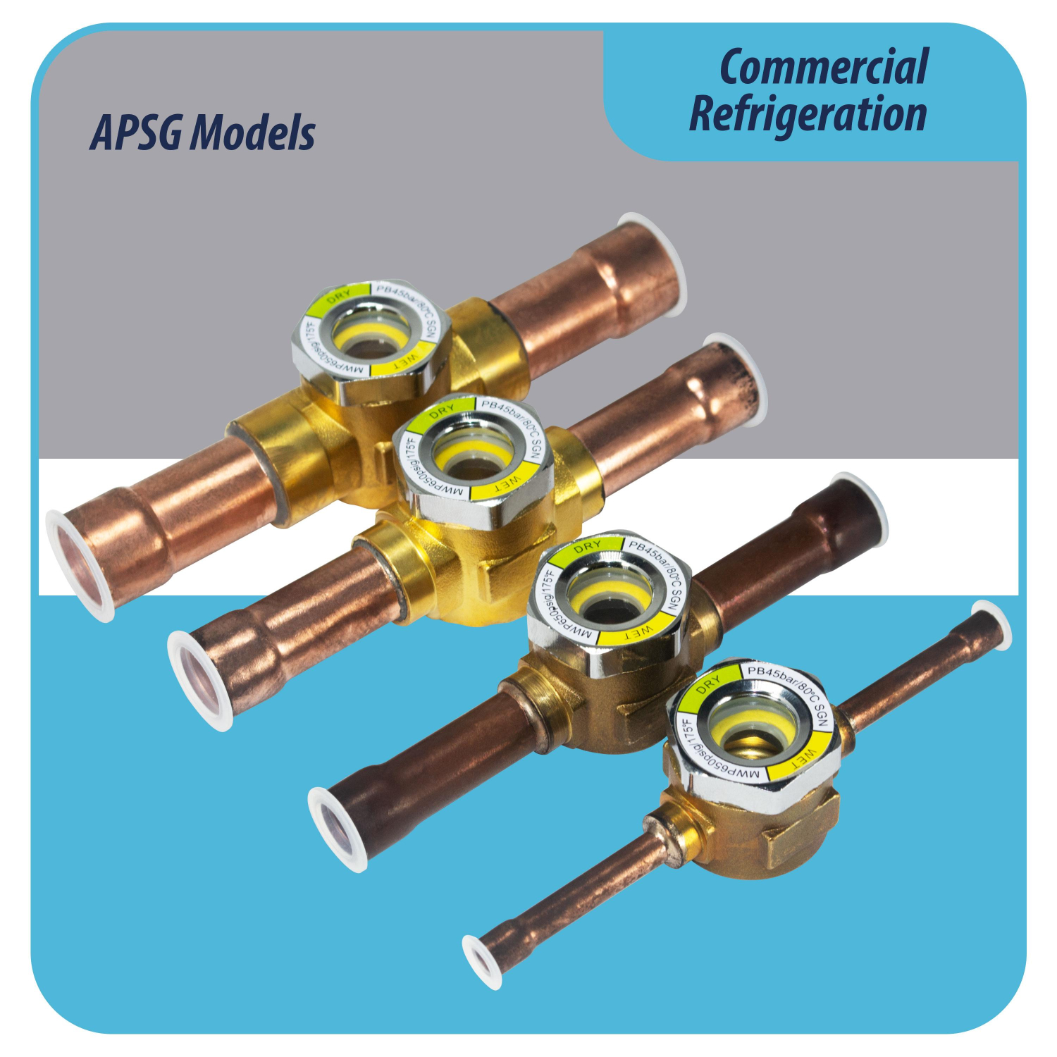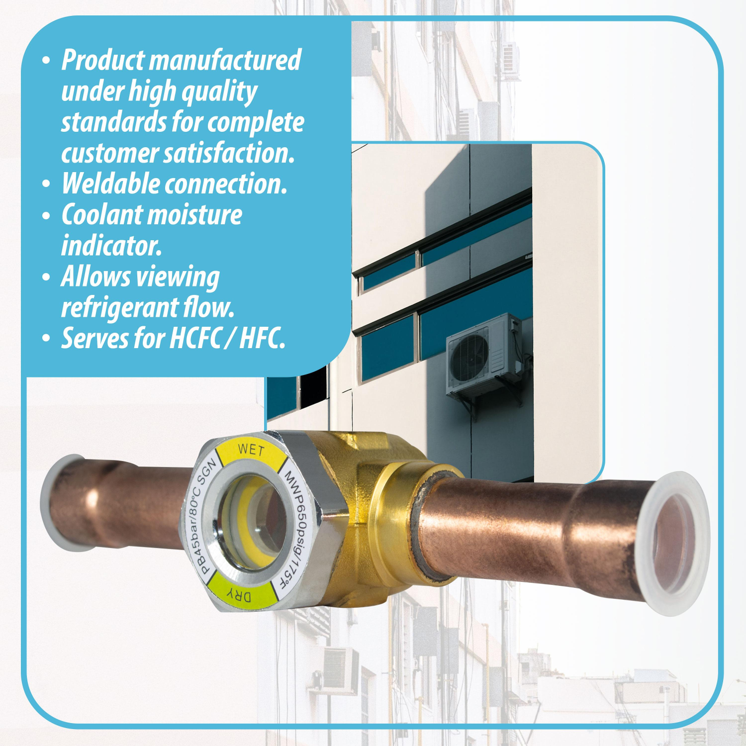 Appli Parts Sight Glass liquid moisture indicator with 3/4 x 3/4 in ODF Solder connections take-apart body type suitable for CFC HCFC HFC refrigerants APSG-34S
