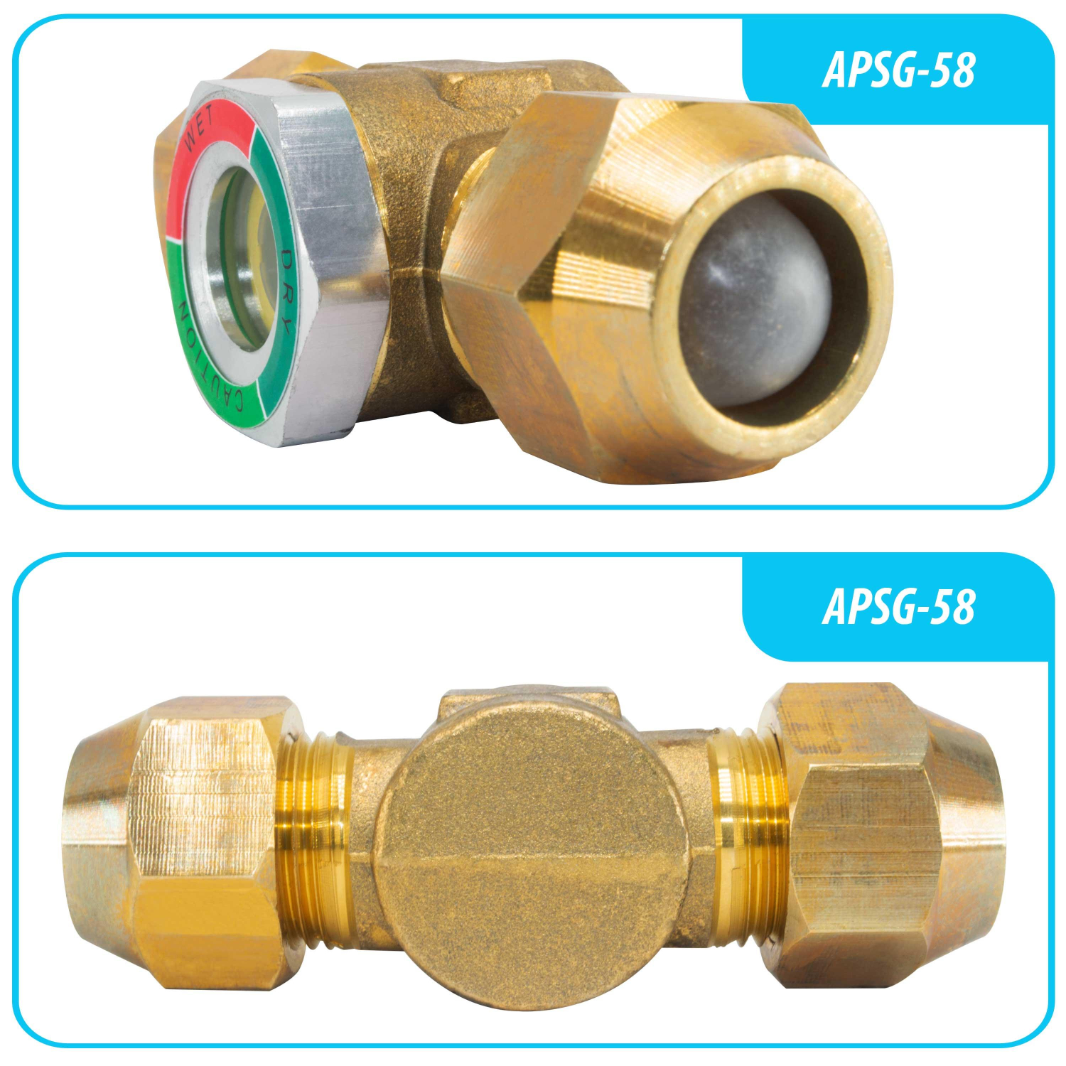 Appli Parts Sight Glass liquid moisture indicator with 5/8 x 5/8 in Flare connections take-apart body type suitable for CFC HCFC HFC refrigerants APSG-58