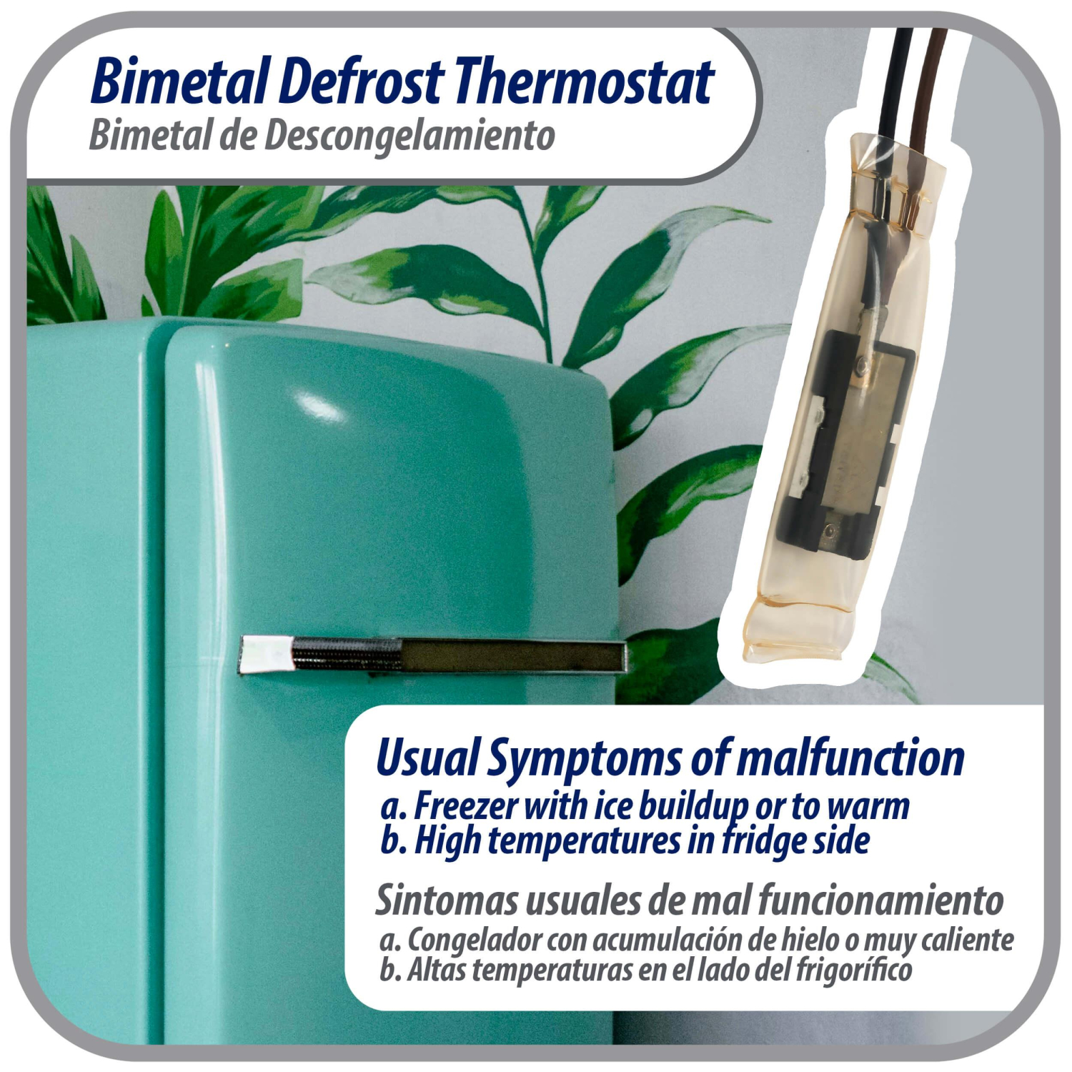 Appli Parts Bimetal Thermostat Asian Type 2 Wire Open 55F and Close 32F, with brown and black wires, Model APBT-S2013 Reference BIM-2013 / Thermodisc Use: Power switch to activate the defrost Function: The operation of the bimetal is to disconnect the defrost resistance when we no longer have excessive ice on the evaporator Features: A refrigerator bimetal is a temperature switch, made up of two metals with different characteristics Location: The factory bimetal is placed in a strategic place, when replacing it, place it in the same place to better receive the temperature and fulfill its function Quality: Our products are manufactured following very strict quality procedures and standards, assuring the customer a high quality product