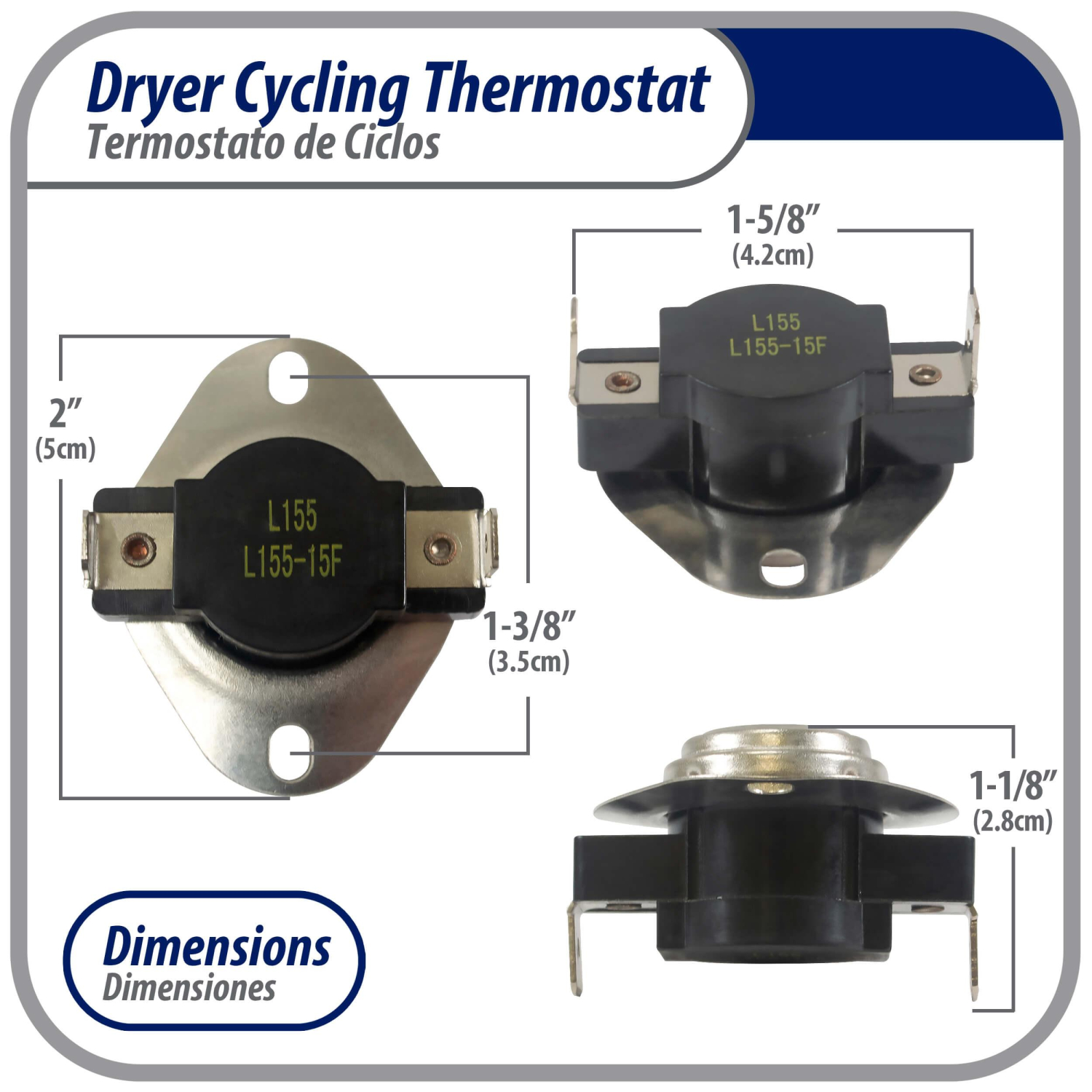 Appli Parts Cycling thermostat L155-15F universal replacement for multiple brand dryers older commercial models only 2 connections APTD-L155 Fits: 60T11 D501759