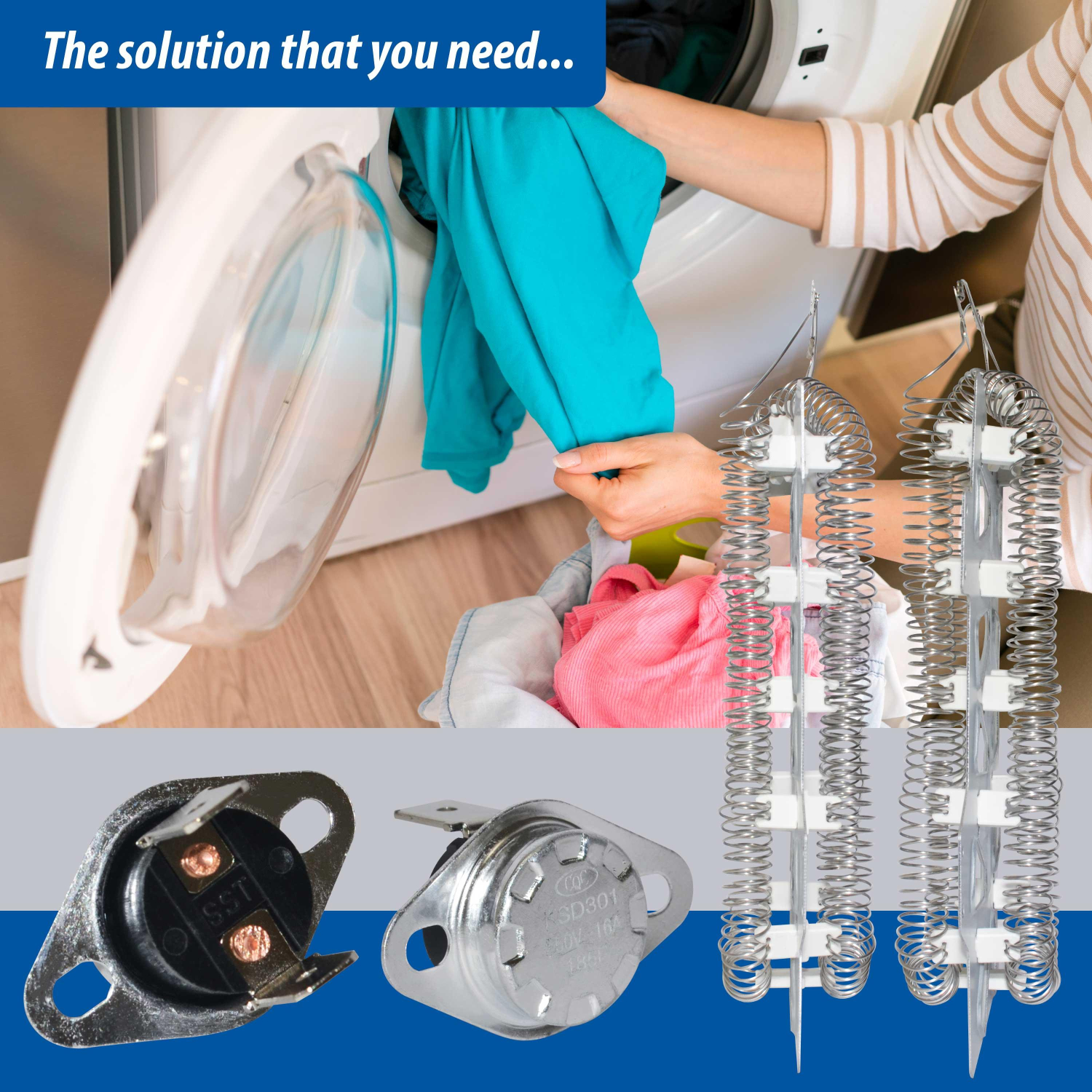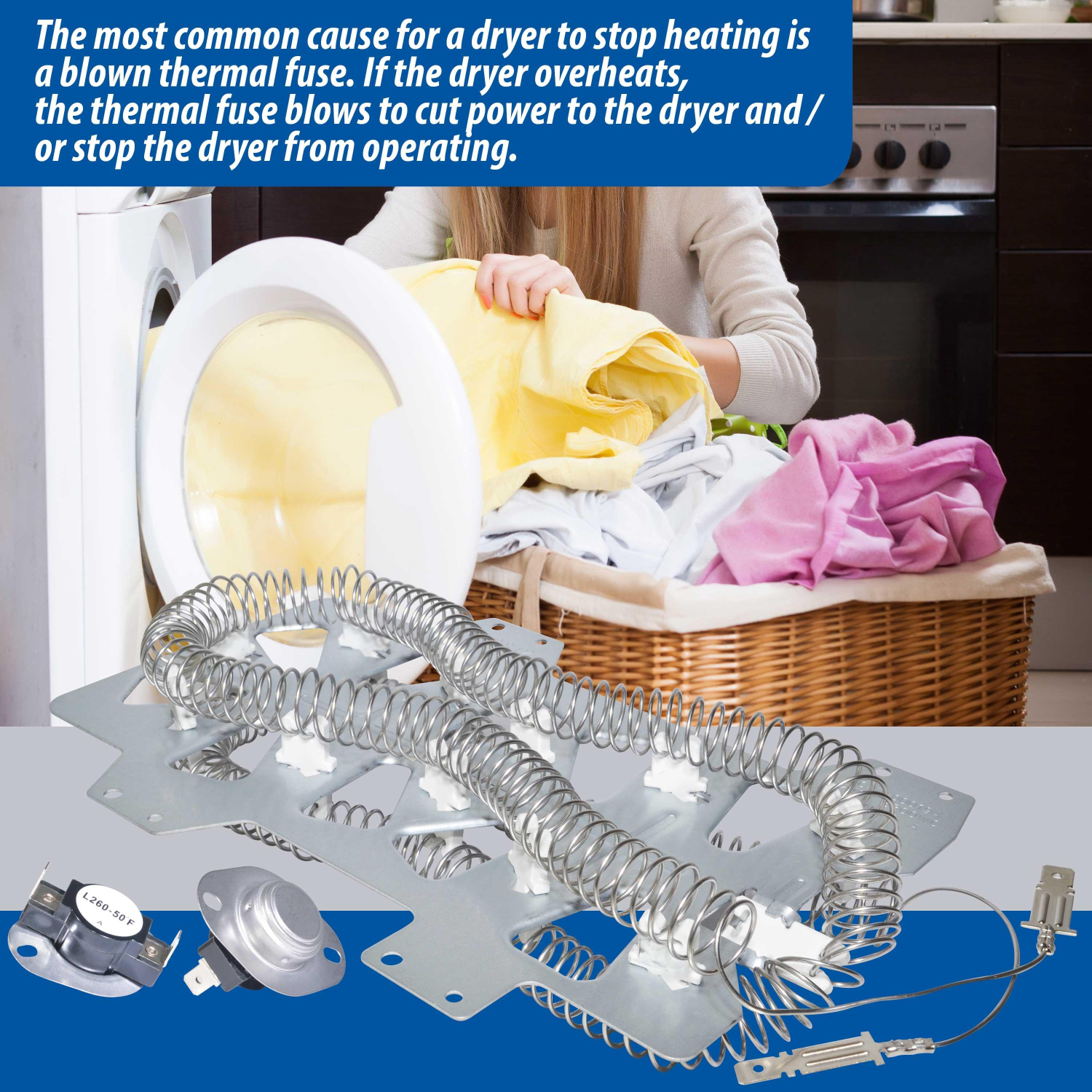 Includes: DC47-00019A Heater, DC47-00018A Thermostat, DC96-00887A Fuse, DC47-00016A Fuse