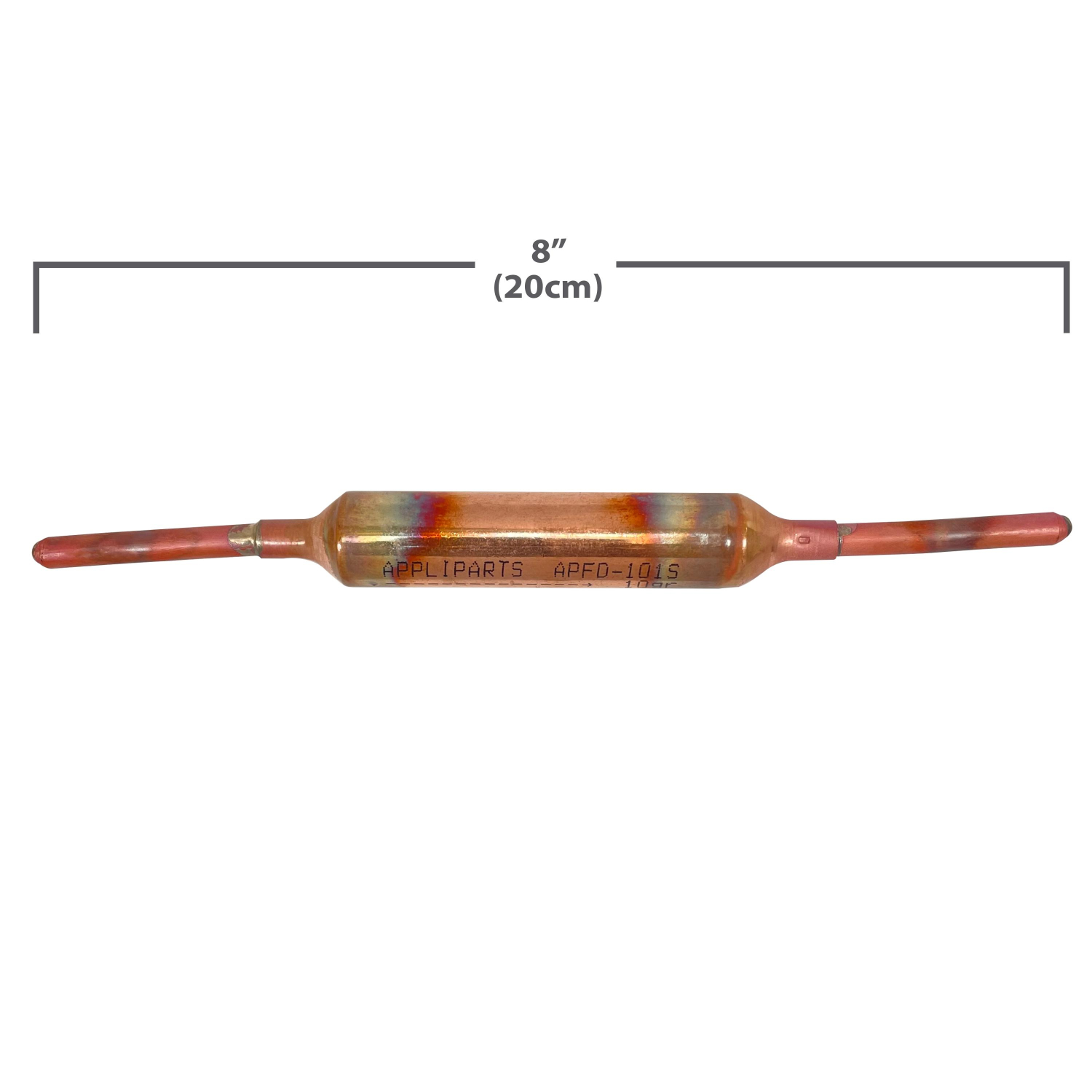 Appli Parts Copper Filter Drier 1/4 x 1/4 in 10g 0.35oz APFD-101S Use: For Use In Refriferation And Air Conditioninig Systems Universal: Will Replace Any Brand And Fit Any System According To Specifications Specs: 1/4 In Copper Connections 8 In Body Length Molecular Sieve Filtering Element. Suitable For Use With All Most Refr Replaces: D103 Sud103 Sud109 Quality: Our Products Are Manufactured Under High Quality Standards To Meet Oem Specifications