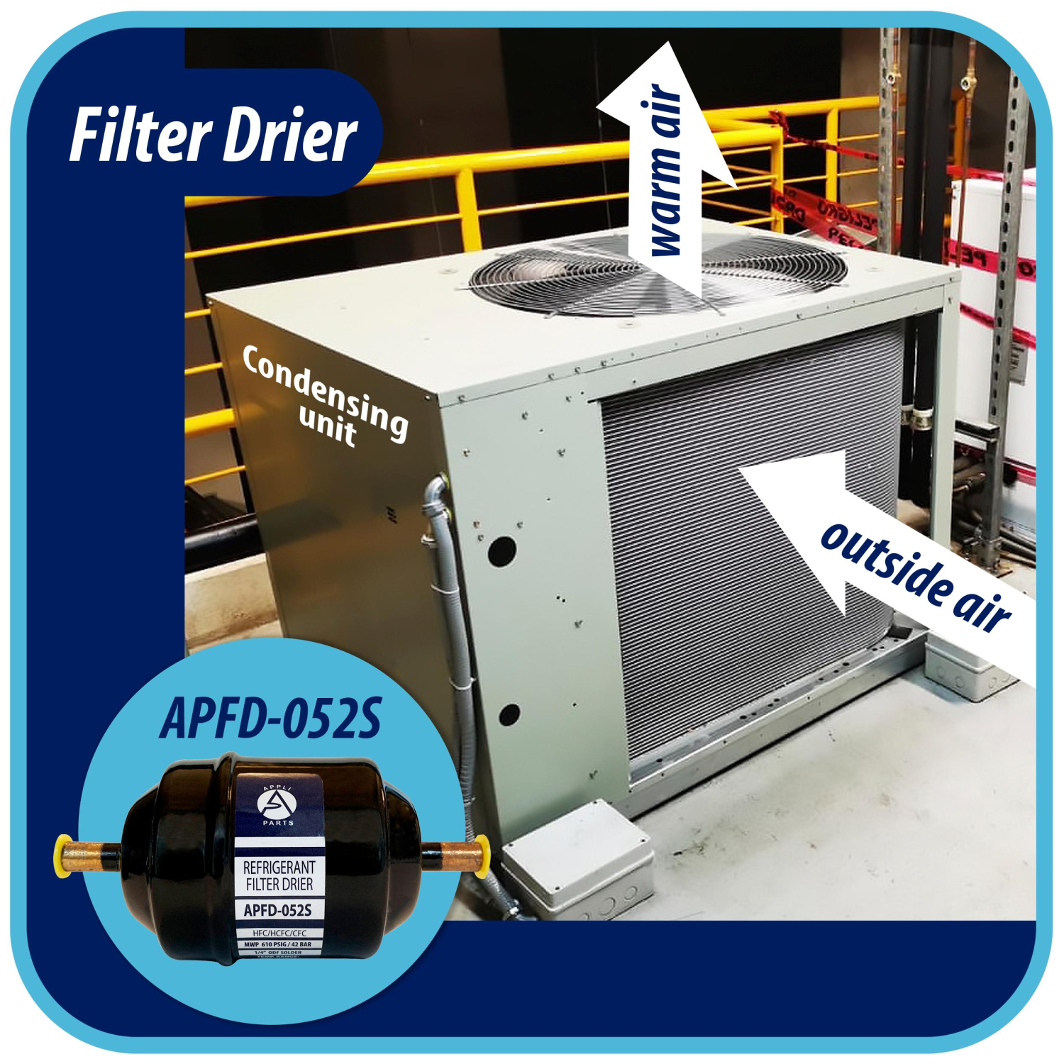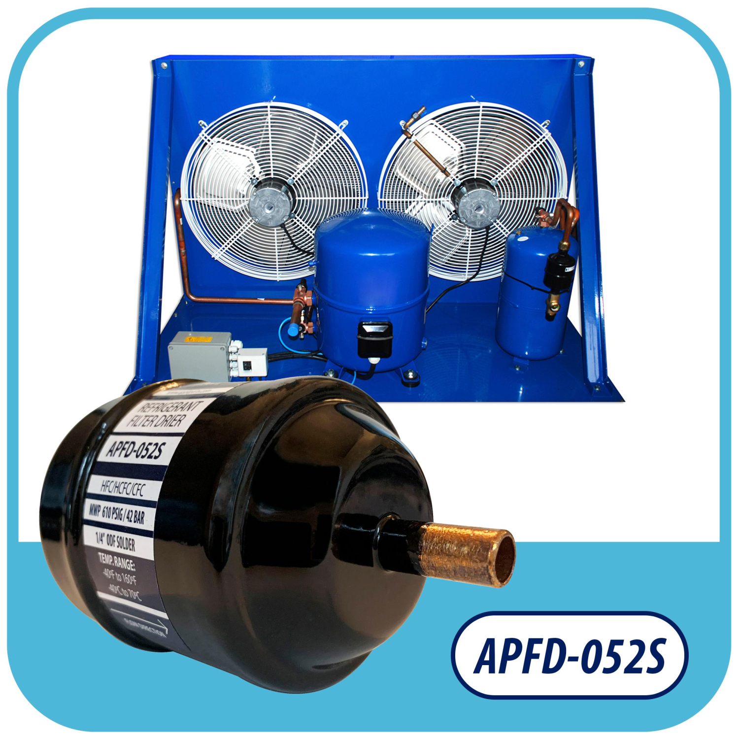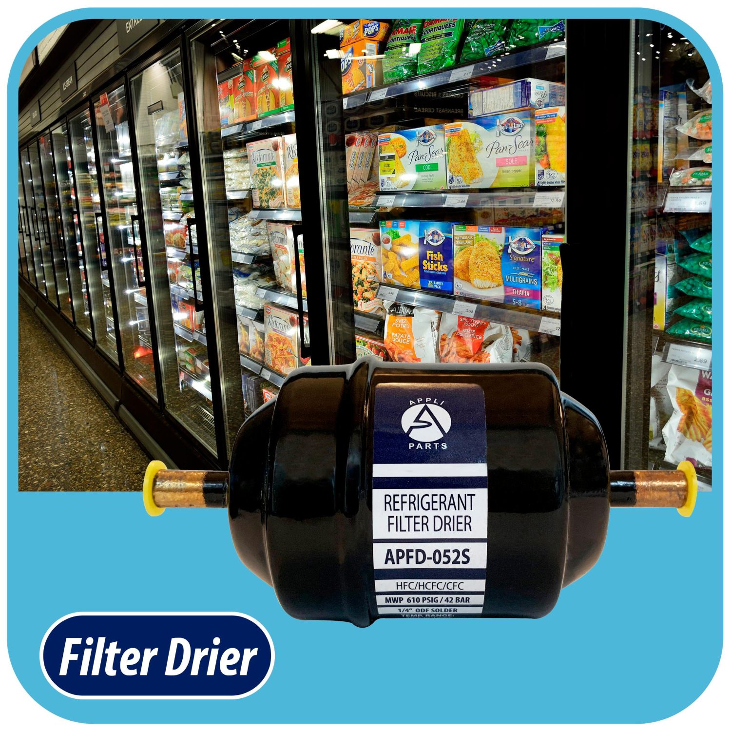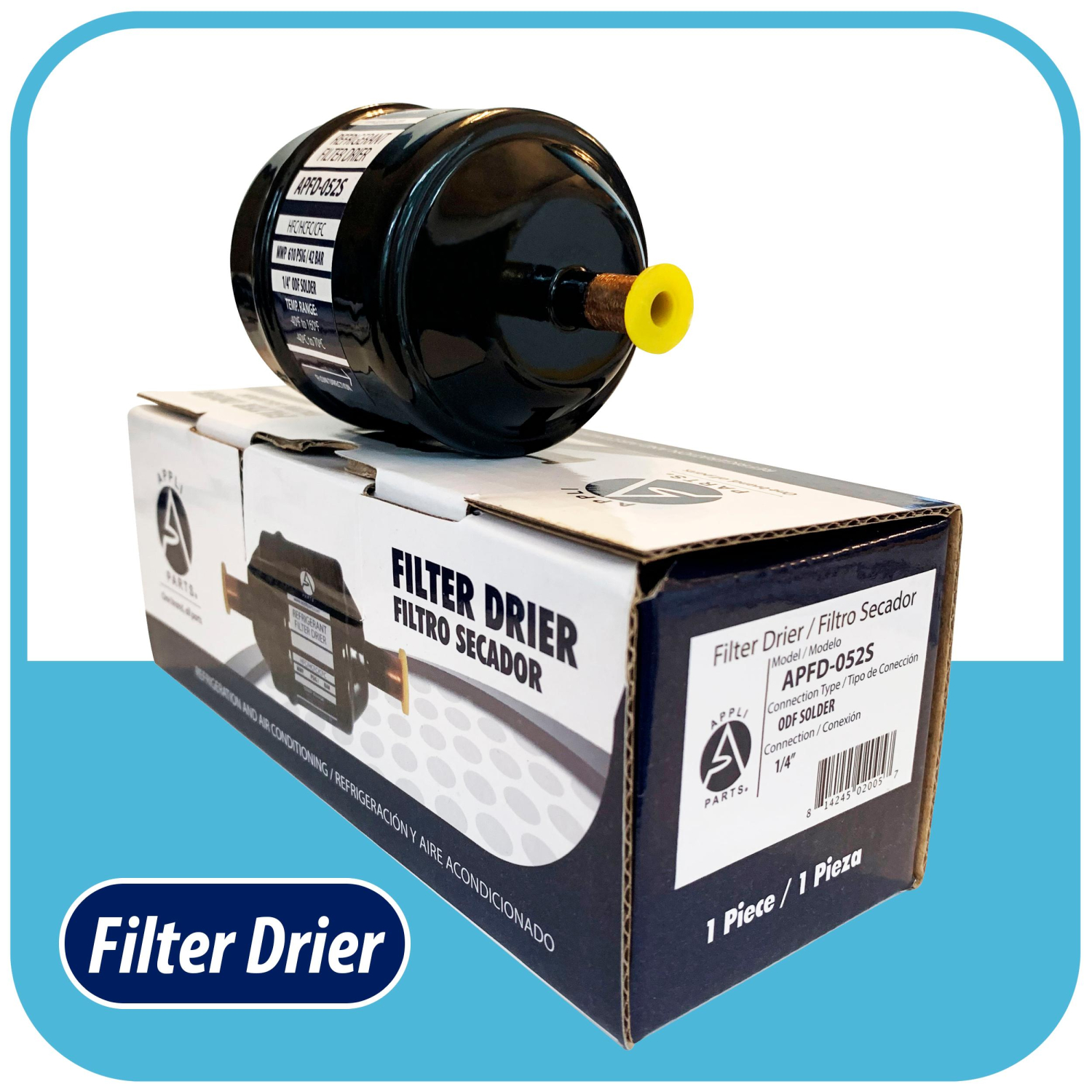 Appli Parts liquid line refrigerant ac filter dryer hvac refrigeration 052S 1/4 in ODF sweat solder connection universal unidirectional 4-1/2 in long 2 in wide APFD-052S