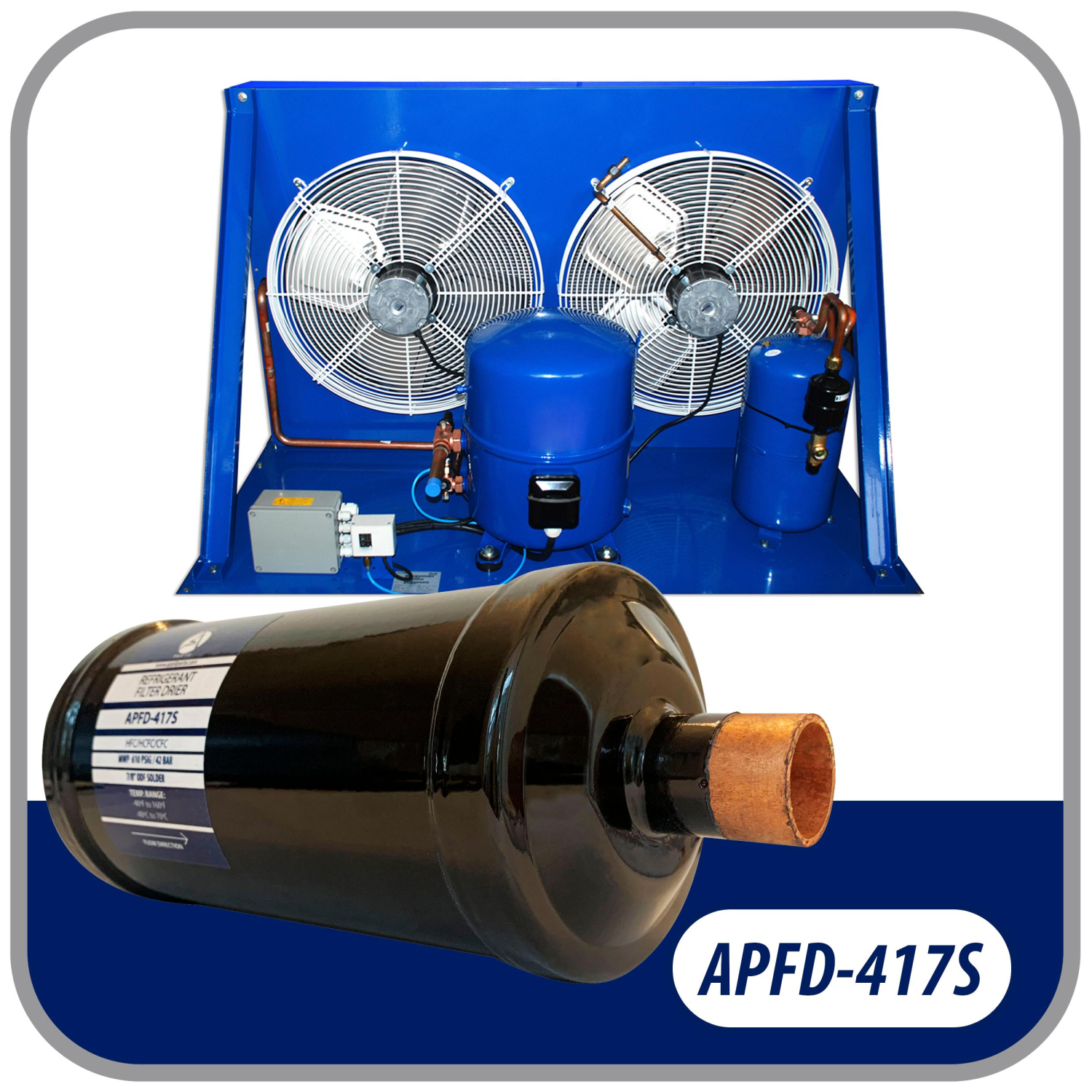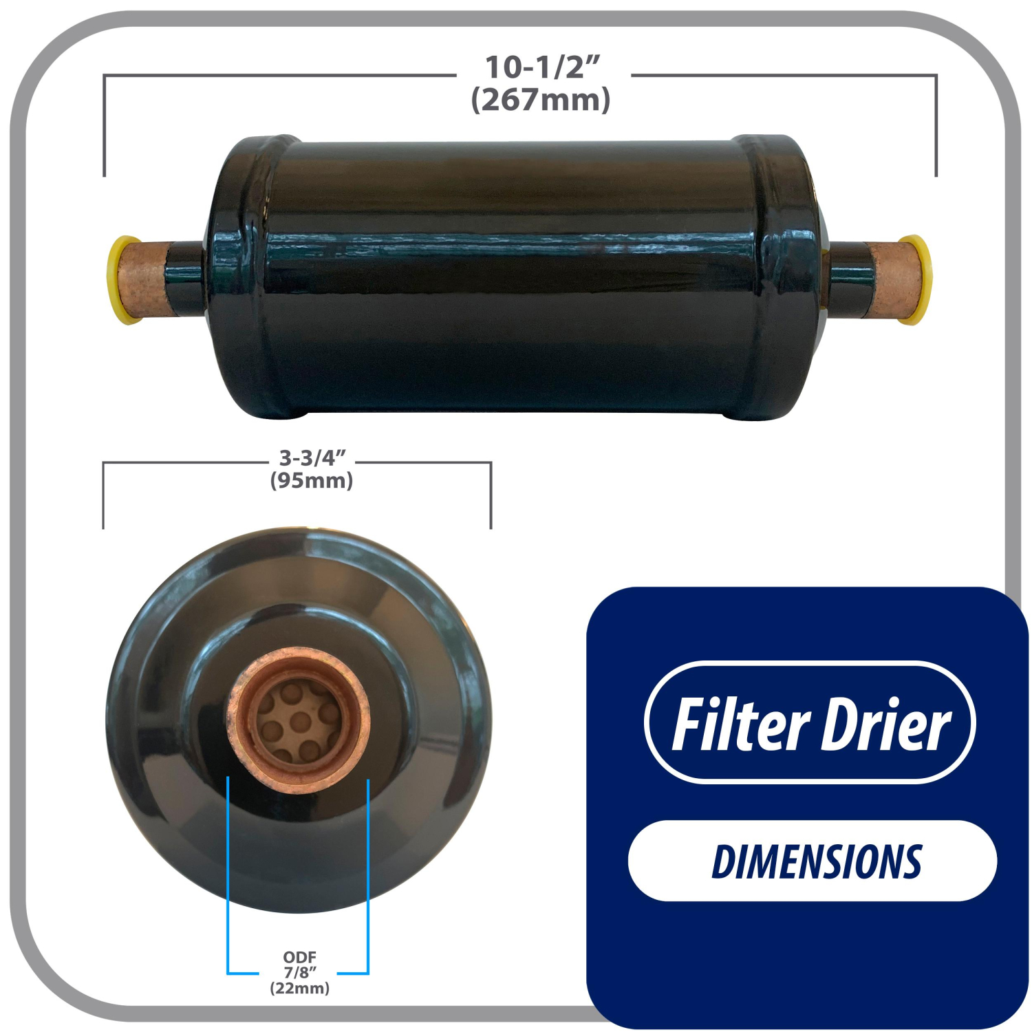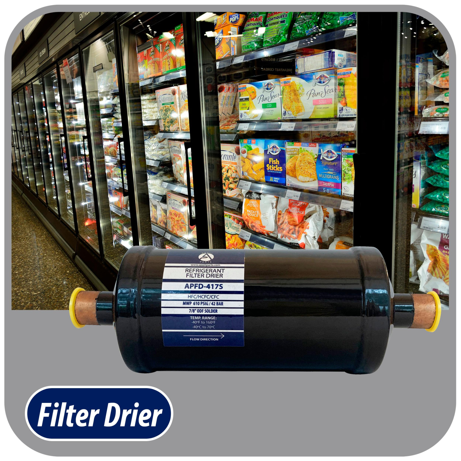 Appli Parts liquid line refrigerant ac filter dryer hvac refrigeration 417S 7/8 in ODF Sweat connection universal unidirectional 10-1/2 in long 3-3/4 in wide APFD-417S
