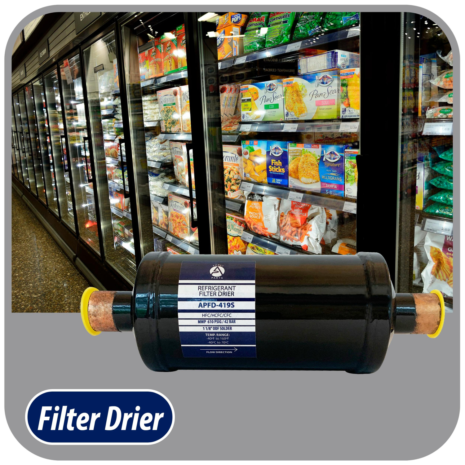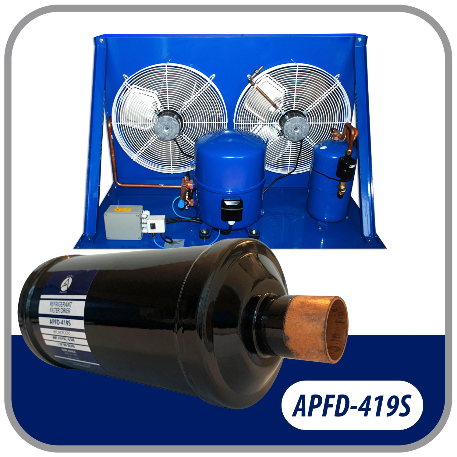 Appli Parts liquid line refrigerant ac filter dryer hvac refrigeration 419S 1-1/8 in ODF Sweat connection universal unidirectional 10-1/2 in long 3-3/4 in wide APFD-419S