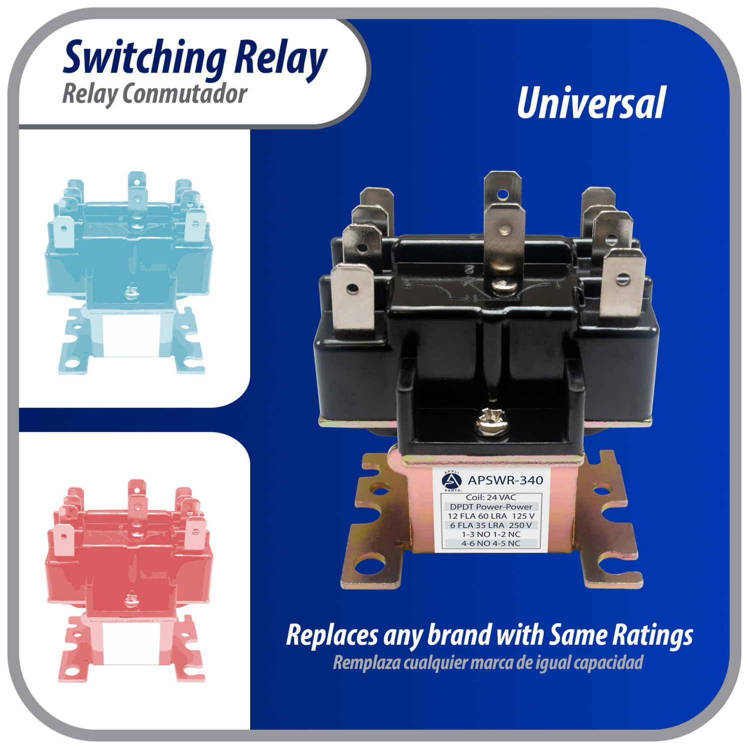 Universal: Will Replace any Switching Relay with the same specifications to work with any brand of motor or other electrical applications where needed