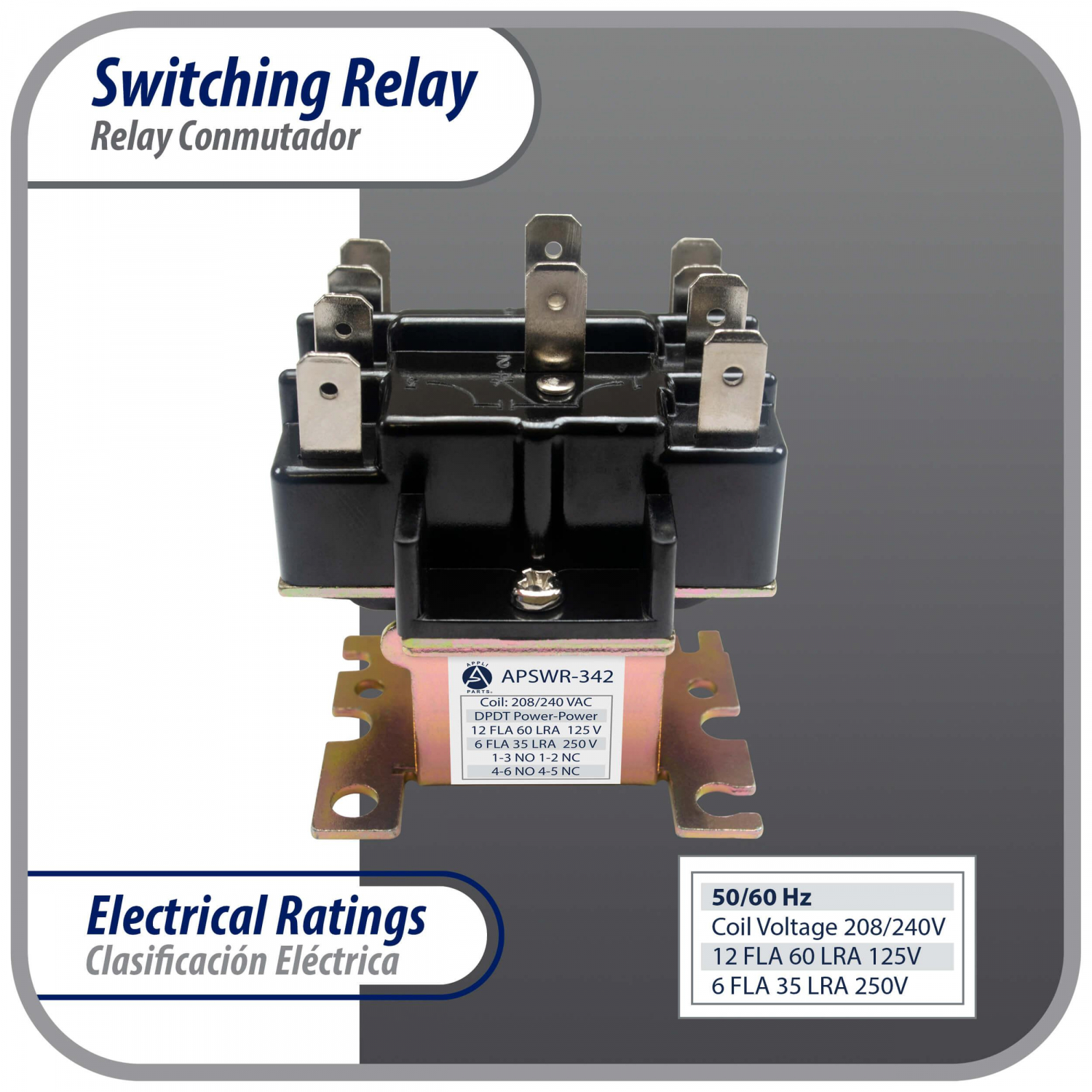 90342 Appli Parts General Purpose Switching Relay Double Pole Double Throw 208-240VAC Coil for HVAC applications and other general electrical installations APSR-342