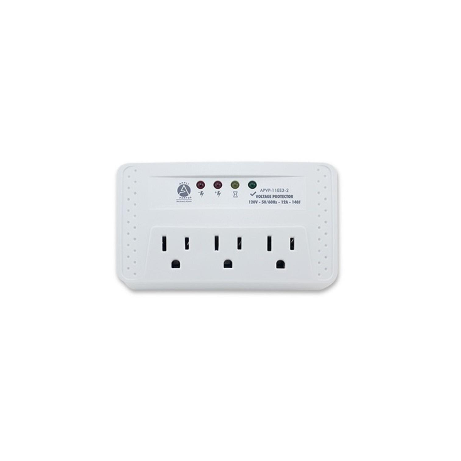 Appli Parts Multiple Voltage Surge Protector 120 V 50-60 Hz 12 Amp 140 joules APVP-11EE3-2 Universal: Will Work To Protect Appliances Or Equipments Within The Established Power Range Indicators: Green Normal Voltage, Yellow Wait Cycle, Red Voltage Out Of Range Protects: Electrical Equipment From Low Or High Voltage, Electrical Blackouts And Surges Use: For Computers, Tv, Small Electrical Appliances In General Wait Time: After Every Electrical Interruptionn There Is A 3 Min Wait Period.