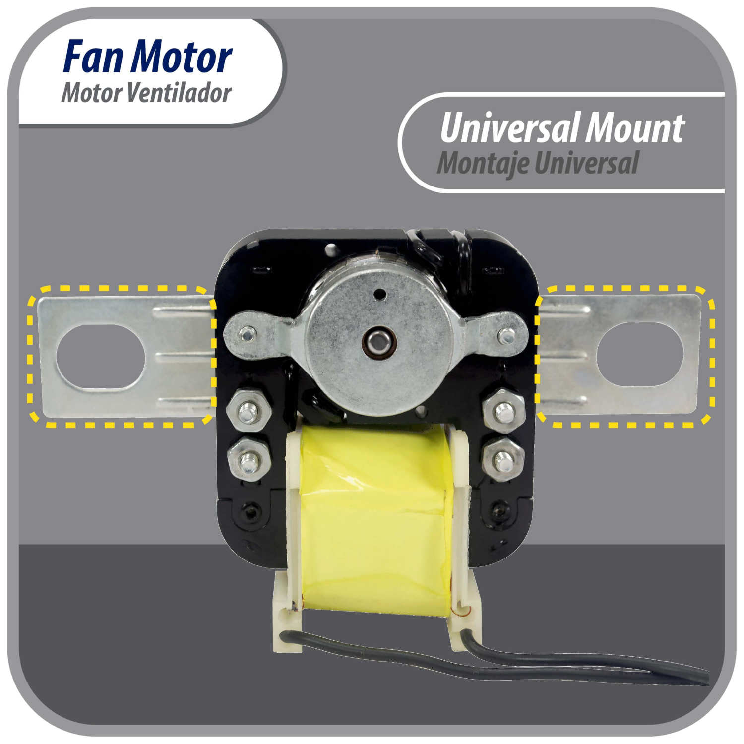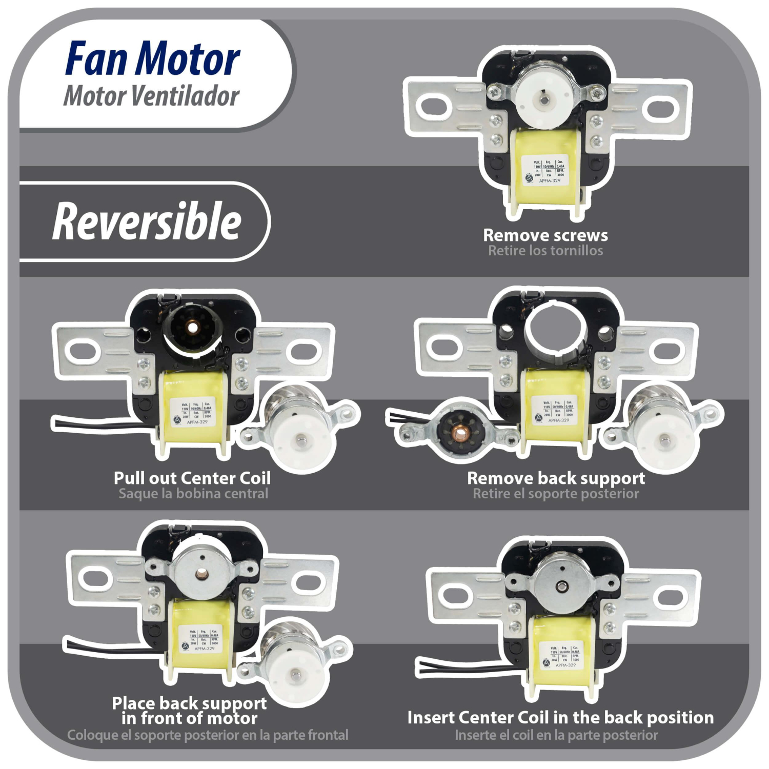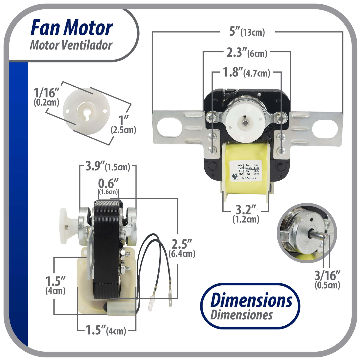 Appli Parts universal Fan Motor 329 replacement intended for refrigerator evaporator 120V 50/60Hz 20W Clockwise Rotation 3000rpm blade not included APFM-329 Universal: Compatible with any brand or manufacturer with the same power supply and specs to perform as expected. Intended as fridge motor, may be used for other applications Specs: Universal multi mount option. Clockwise rotation with option of reversing the rotation. 110V 50/60Hz 3000rpm. Plastic hub for specific plastic blade. Replaces: Will fit as a replacement for multiple brands such as Kenmore, Maytag, Seas, whirlpool refrigerator evaporator fan motor and other brand fan motor When to replace: When used as refrigerator fan motor, you will need to replace when the temperature in the refrigerator is to high or when a noise is coming from the lower back part of the fridge Quality: Our products are manufactured according to Original Equipment Manufactures quality standards for best performance as a replacement part. Listed under UL E479056
