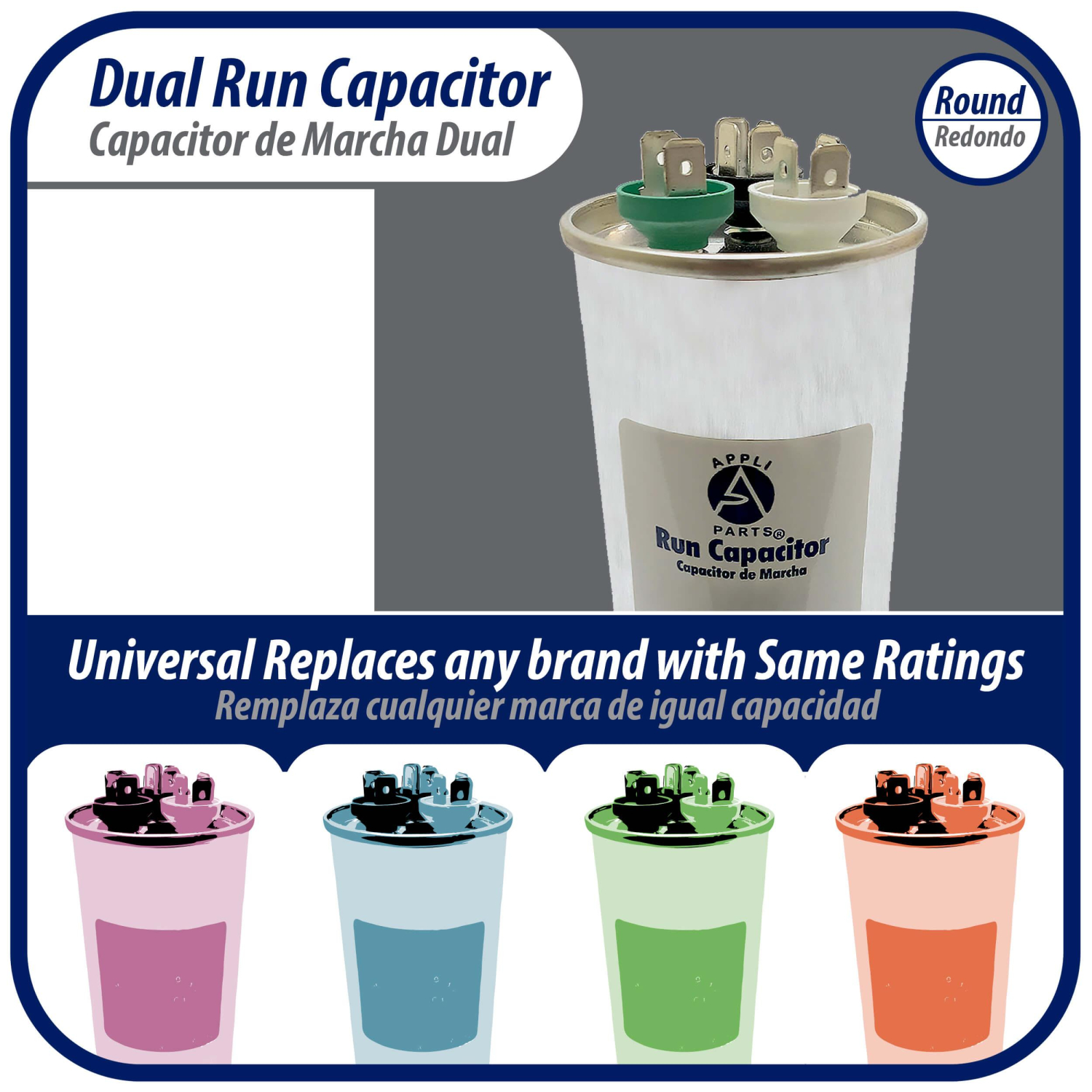 Universal: Replaces any brand with the same capacitance capacity and voltage. Will work for 370V or 450V. 1/4 in Male Quick-connectQuality: All our products are designed and manufactured following very strict procedures and high quality standards during their manufacture. An optimal selection of materials is made, combined with research and development procedures, which guarantee the durability and performance of each manufactured product, offering our customers the same efficiency expected from an original part. UL E476928 Certified, manufactured with No PCBSpecs: Tolerance is +/- 5 % of Capacity, Working temperature environment from -40F (-40C) to +185F (85C). Dimensions 5-5/8 in High 2-1/4 in WideProtection: Protected for 10,000AFC which means this product will not burst if by any reason is short circuitsReplaces: CAP-75/5-450Weight : 0.94 LBR