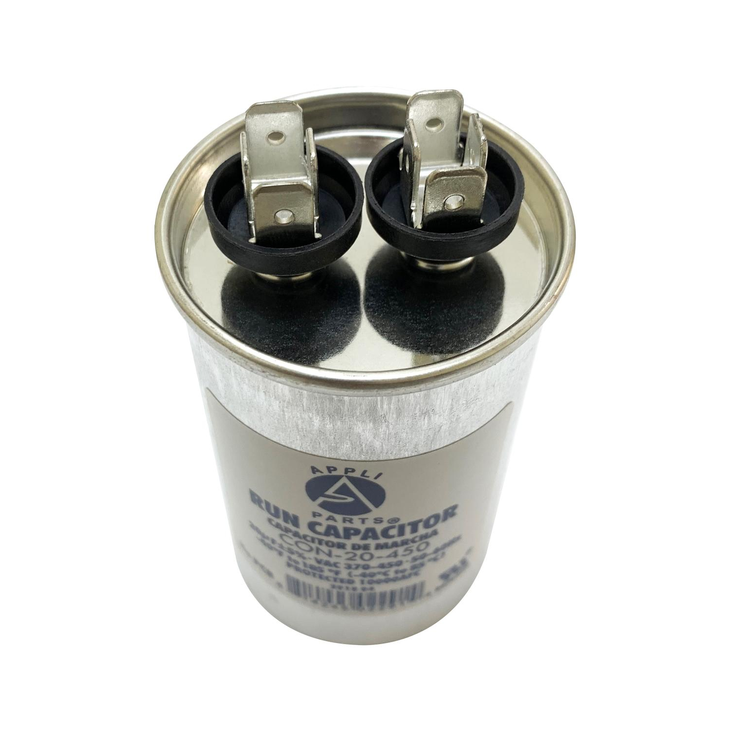 Appli Parts Run Capacitor for ac 20 Mfd uF (microfarads) 370 VAC or 450 VAC CBB65 Round Universal fit for hvac and other applications 3-3/8 in High 1-3/4 in Wide CON-20-450