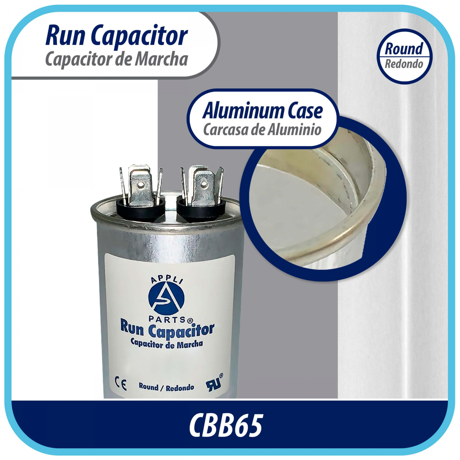 Appli Parts Run Capacitor for ac 40 Mfd uF (microfarads) 370 VAC or 450 VAC CBB65 Round Universal fit for hvac and other applications 4 in High 2 in Wide CON-40-450