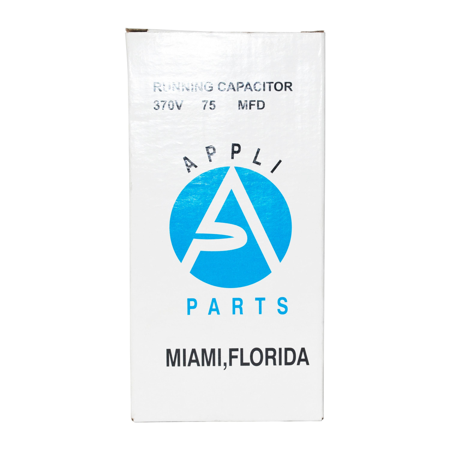 Appli Parts Run Capacitor for ac 75 Mfd uF (microfarads) 370VAC CBB65 Oval Universal fit for hvac and other applications 2-3/4 in Wide 1-3/4 in Depth 5-3/4 in Height CON-75-370