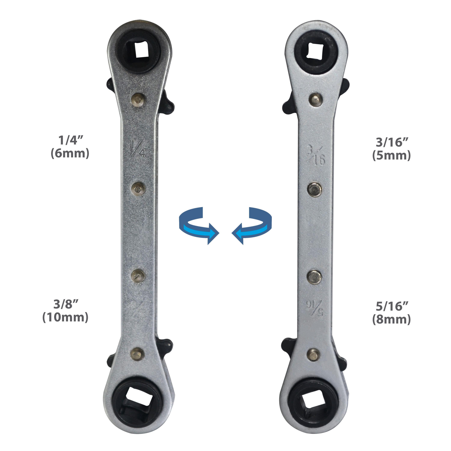 Includes: Expansion tube adapters 3/16, 1/4, 5/16, 3/8, 1/2, 5/8 and 3/4 inch. Includes: Tube cutter: 1/8 to 1-1/8 inch and Ratchet Wrench: 1/4, 3/8, 3/16 and 5/16 inch