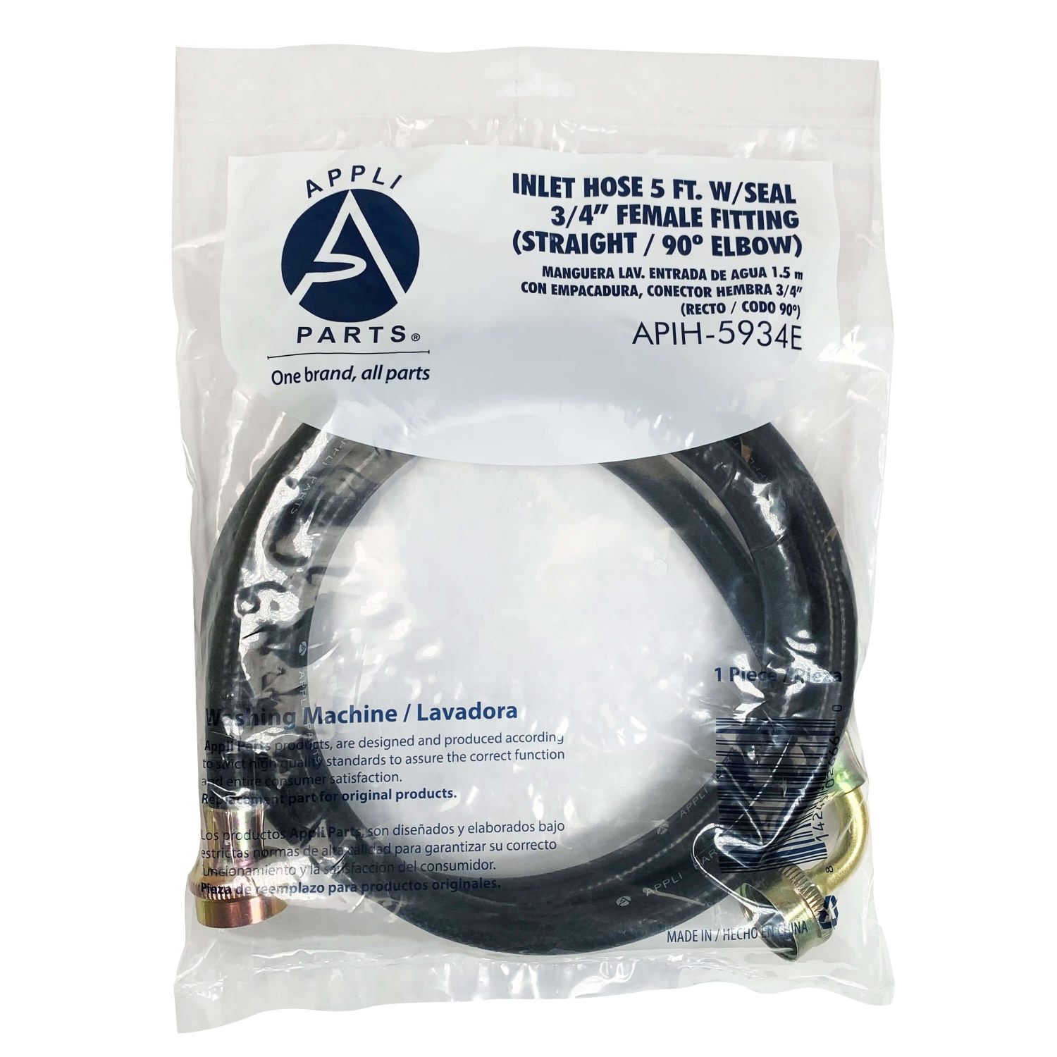Appli Parts Washing Machine Inlet Hose 5 feet (1.5 meter) with 2 Seal or Rubbers, with 3/4 inch Female Fitting (Straight / 90 Degree Elbow) model APIH-5934E