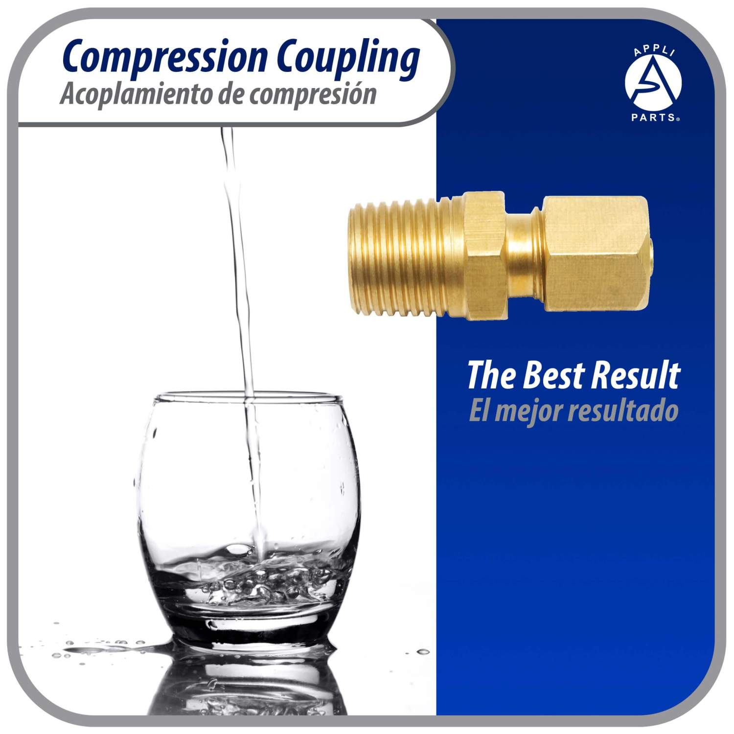 Appli Parts Brass 1/4 inch Compression Fitting reduction coupling for in line water filter with Male 3/8 inch NPT connection for Copper or PVC tubing APWF-100BC Use: This 1/4 compression fitting Connectors are design and intended for in-line water filter model such as model APWF-100. Can be used with other filter and similar applications Specs: Contains 2 sets of Brass compression coupling with 1/4 inch Nut, Sleeve ferrule and inserts with male 3/8 in connection. Brass construction for extra durability Applications: Designed and tested for water lines for use in Water filter applications, however, it has been used in other applications such as air, oil, gas and others. Installation: Insert the Male 3/8in side into the Water filter. Place the insert into the end of the waterline. Insert the Nut and then the sleeve ferrule. Secure the waterline into the body and tighten the nut Quality: Our products have been designed and Manufactured following High Quality Standards and Manufacturing procedures to comply with Original Manufacture Standards