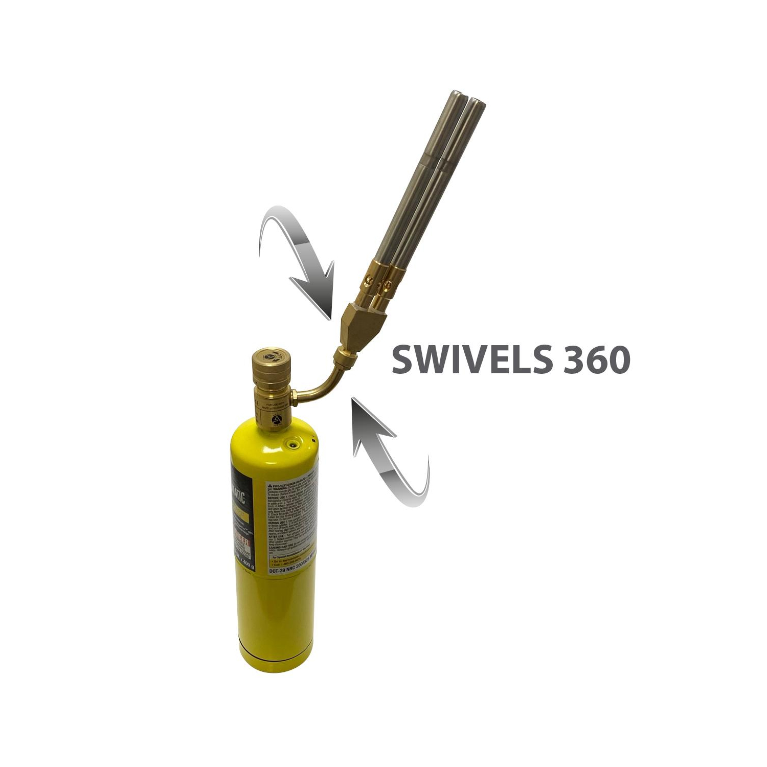 Specs: Standard connection CGA600, 375 PSI max gas pressure, max temperature 2400F, tip rotation 360 degrees